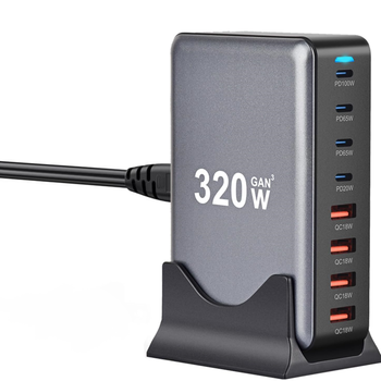 Super Fast 500W GaN 6C2A Charging Station 100W USB-C PD for MacBook iPhone 17 16 Android 8 Devices Simultaneously 18W 20W 65W