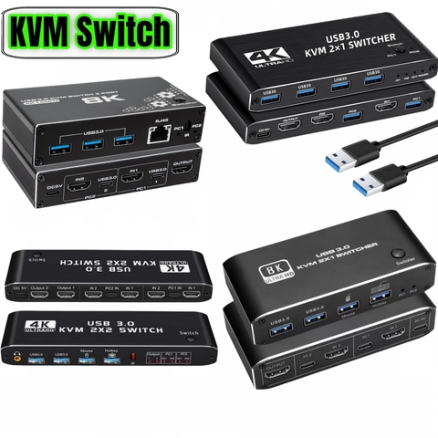8K HDMI KVM Switch 2 in 1 OUT 2x1สลับ USB 3.0 KVM สนับสนุน RJ45 Ethernet 8K 30Hz, 4K สำหรับคีย์บอร์ดจอคอมพิวเตอร์