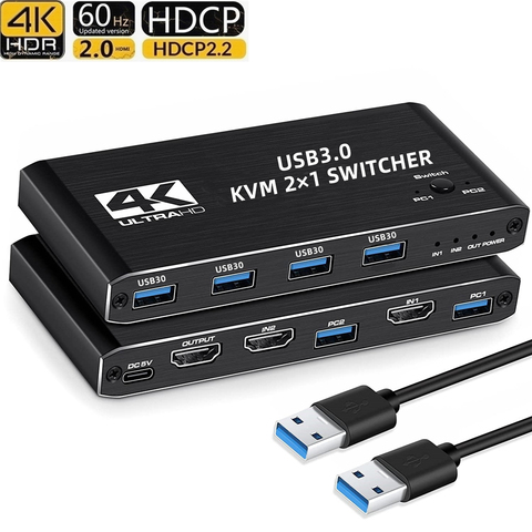 สวิตช์ HDMI KVM 2x1ตัวแยก USB 3.0 KVM สวิตช์ USB 2 in 1 Out 4K 60Hz สำหรับคีย์บอร์ดจอคอมพิวเตอร์2.2 HDCP