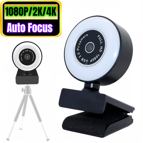 1080P 2K 4K HDコンピュータウェブカメラ回転PC USBビデオウェブカメラオートフォーカスライブストリーミングMic & リングフィルライト付き