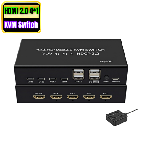 4K 60hz 30HZ 4ポートHDMI 2.0 KVMスイッチ4x1 4 4インチ1アウトKVM USB 2.0スイッチハブ4 PC用コンピューターシェアモニターマウスキーボード
