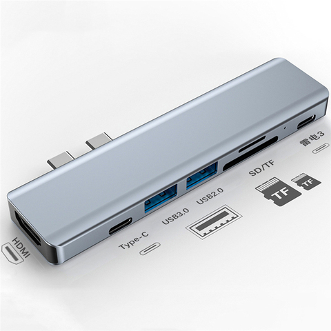 यूएसबी प्रकार सी हब एडाप्टर 1 में दोहरी यूएसबी प्रकार-सी 7 विस्तार डॉक स्टेशन के लिए मैकबुक प्रो 4K HDMI के यूएसबी 3.0 एसडी/माइक्रो एसडी कार्ड रीडर