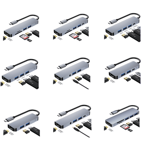 8 में 1 टाइप-सी यूएसबी टाइप सी सी से hdmi rj45 गीगाबिट ईथरनेट एडाप्टर 3.0 हब डॉक के साथ हब डॉक