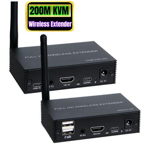 Bộ mở rộng HDMI KVM không dây 1080P 200M, bộ mở rộng KVM không dây USB, bộ phát và thu âm thanh video, hỗ trợ chuột và bàn phím