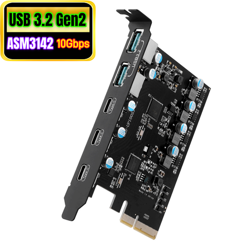 Carte PCIe vers USB 3.2 3.1 Gen 2 10Gbps 5 ports USB Type-C Type C a Hub de carte d'extension PCI Express pour Windows 10 8/7 Linux MAC OS