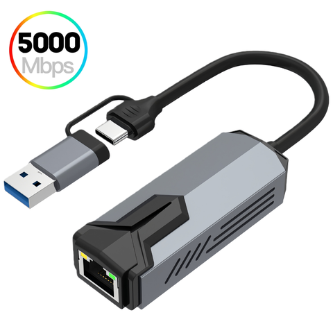 2 en 1 5Gbps USB 3.0 Type C Gigabit Ethernet Adaptateur 5000Mbps USB3.0 Type-C vers RJ45 2.5G 5G Carte réseau filaire Convertisseur Lan