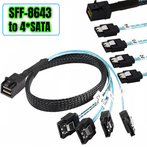 Câble Mini SAS SFF-8643 à 4 SATA, câble SFF 8643 hôte à 4X SATA câble compatible contrôleur Raid disque dur câble de rupture avant