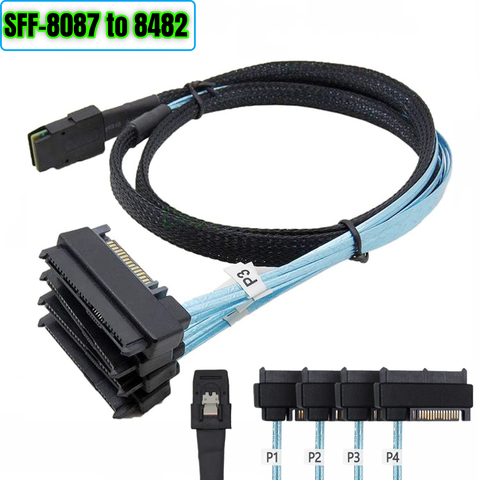 Mini SFF-8643 SAS HD interne à (4) connecteurs SFF-8482 29pin avec port d'alimentation SAS 15pin câble Raid serveur de données HDD 12 GB/S