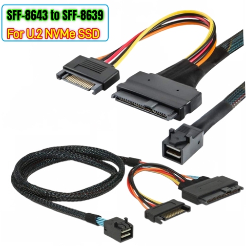 Câble SFF-8639 PCIe 4.0 Mini SAS SFF-8643 vers U.2 avec alimentation SATA 15Pin pour extension interne de carte mère NVMe SSD Hot-Swap