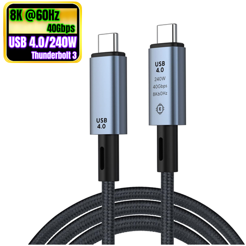 40Gbps 8K 60Hz USB C a tipo C Thunderbolt 3 Cable tipo C USB 4,0 PD 240W Cable de carga rápida compatible con transmisión de Audio y vídeo 4