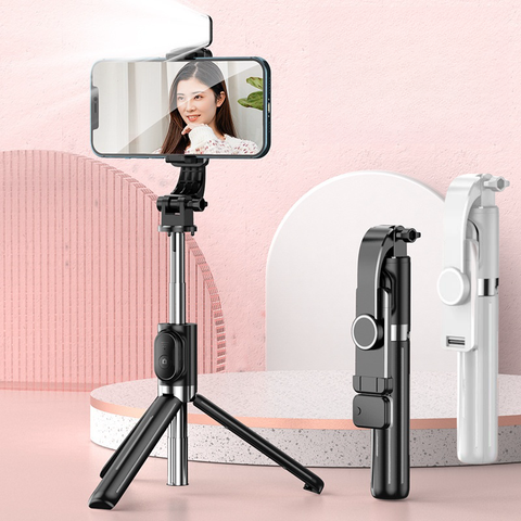P20S R1 R1S Bluetooth אלחוטי מרחוק Selfie מקל LED אור 3 ב 1 להארכה מתקפל כף יד חדרגל חצובה Stand מחזיק
