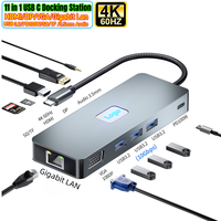 11'i 1 arada USB C Bağlantı İstasyonu PD100W Şarjlı Tip-C - HDMI DP 4K 60hz VGA Gigabit LAN, USB 3.0 3.2 HUB ve SD/TF Kart Okuyucu ile