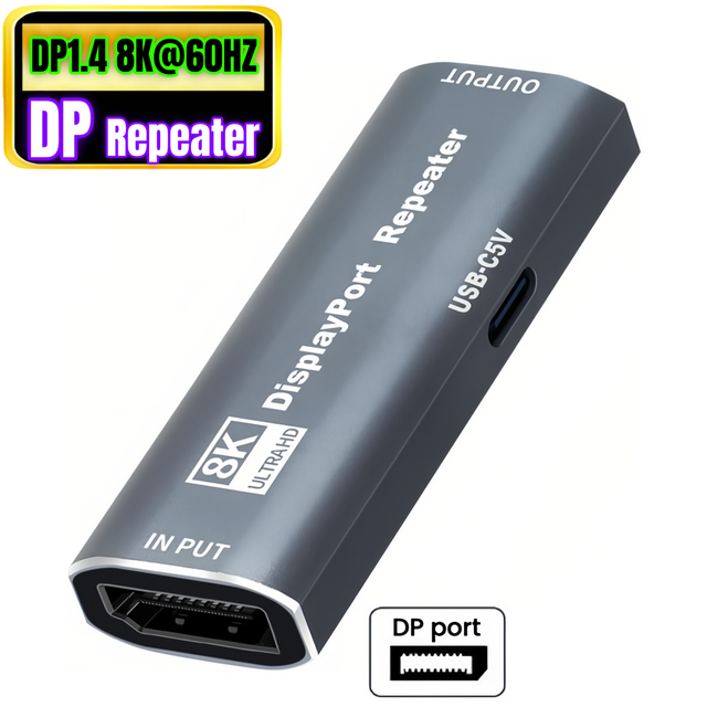 Display DP Port Repetidor Amplificador Signal Booster 4K 240Hz 60Hz Extensor, DP Booster Feminino para Feminino Plug para Gaming VR PC
