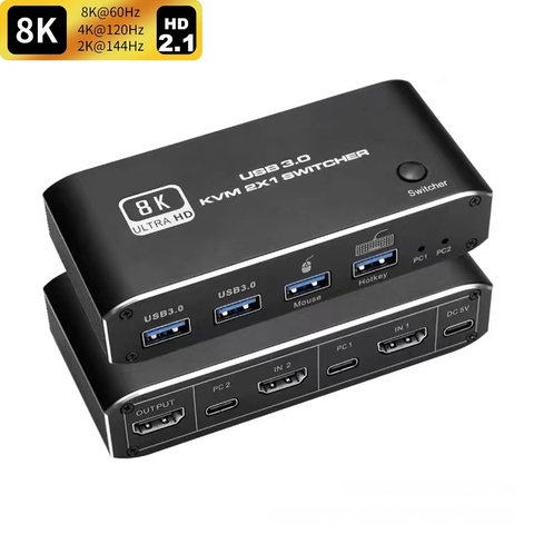 Переключатель HDMI 8K 2,1 KVM, разветвитель USB 3,0 KVM, переключатель USB 2 в 1, переключатель для компьютерного монитора, клавиатуры, мыши, DID HDCP, печать