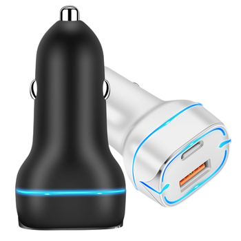 อะแดปเตอร์ชาร์จไฟในรถเร็ว38W แบบ Dual WAY 18W พอร์ต USB QC3.0 20W Type C PD 3.0ไฟ LED สีฟ้าสำหรับ iPhone Samsung ชาร์จเร็ว